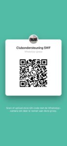 Voor sportclubs en kader is er de whatsappgroep ‘Clubsondersteuning SWF’ waarin al het nieuws, aanbod cursussen en thema-bijeenkomsten en ontwikkelingen voorbij komen. Wil je deelnemen aan deze groep, scan de QR-code of klik op groene knop.